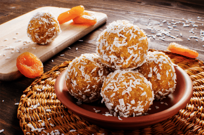 Malzemeler: 1 su bardağı kuyu kayısı ½ su bardağı ceviz ½ su bardağı fındık 1 çay bardağı Hindistan cevizi 1 yemek kaşığı bal Hazırlanışı: Kuru kayısıları ve kuru yemişleri mutfak robotunda karıştırın Hamur kıvamı elde etmek için bal ve oda sıcaklığında tereyağını ilave edin. Son olarak Hindistan cevizini de ilave edip bir kez daha karıştırın.…