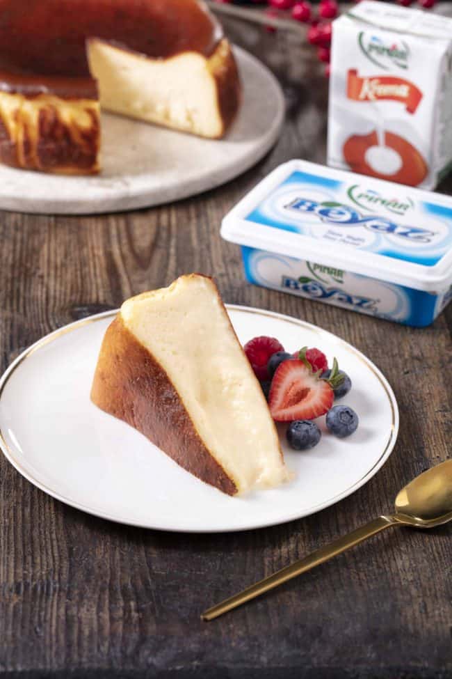 Malzemeler 600 g Pınar Beyaz • 100 g Pınar Krema • 20 g mısır nişastası • 200 g şeker 210 g yumurta (büyüklüğüne göre 3 veya 4 adet) • 1 paket şekerli vanilin Tüm malzemelerin oda sıcaklığında olduğundan emin olun. Pınar Beyaz, Pınar Krema ve toz şekeri homojen oluncaya kadar düşük devirde çırpın. Ara ara…