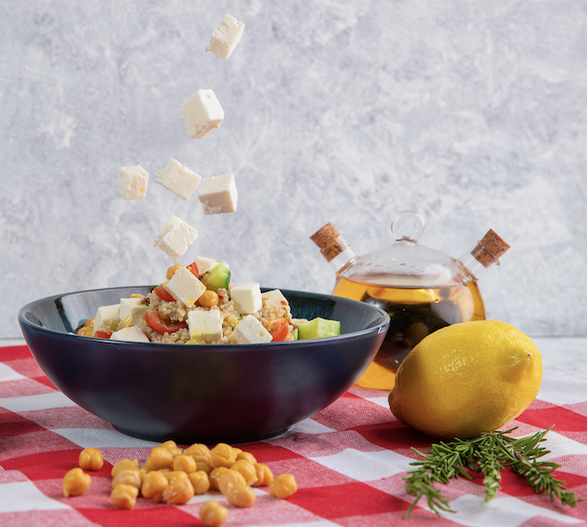 Şişen kinoayı soğuması için buzdolabına kaldırın. Salatalık, domates Pınar Light Beyaz Peyniri istediğiniz büyüklükte kesin.