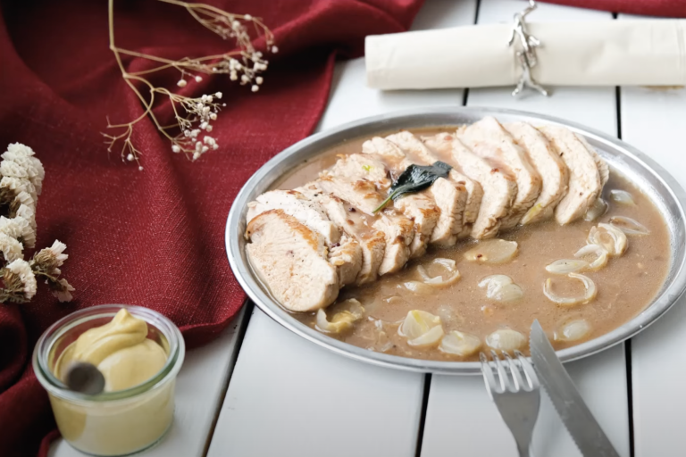 Malzemeler: 1,7 kg kemiksiz hindi göğüs 1 yemek kaşığı sızma zeytinyağı 50g tuzsuz tereyağı 4…