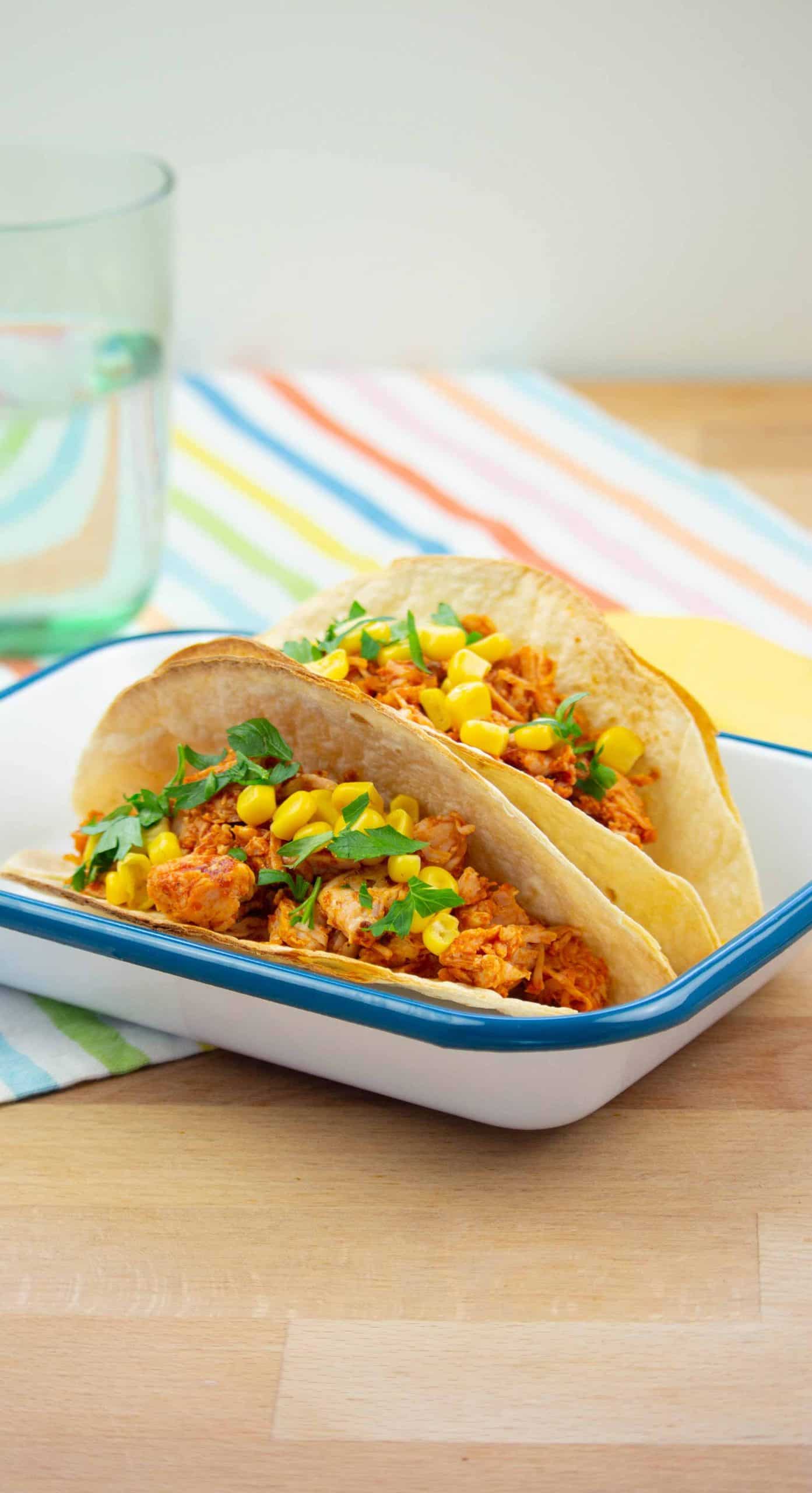 Lavaşları fırın telinde ikiye katlanmış şekilde açın, 180 derecelik fırında 5 dakika pişirin. Tavada zeytinyağı, salça, pulbiber ve hindi filetoyu soteleyin. Taco hamurunun arasına doldurun. Üzerini mısır ve maydanoz ile süsleyin.