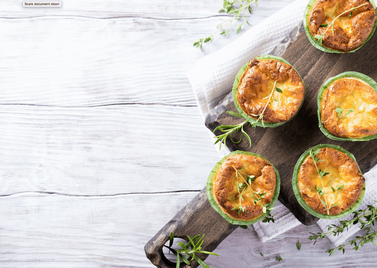 Derin bir kasede yumurta, yoğurt ve erittiğiniz tereyağını iyice çırpın. Taze kekik yapraklarını saplarından ayırın, kaşar peynirini küçük küpler halinde doğrayın, her ikisini yoğurtlu yumurtalı harca ekleyin.