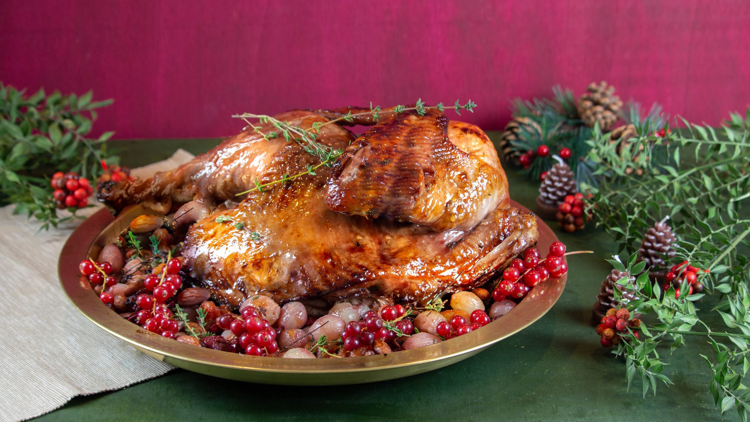 - Suyu ve meyveleri birbirinden ayırıp fırın kabına meyvelerin suyu ve hindiyi ekleyip üzeri kapalı şekilde 1 saat boyunca fırında pişirin.