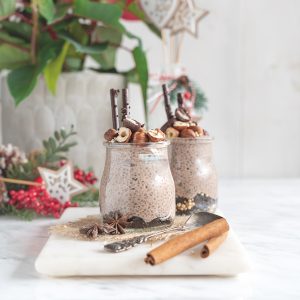 Sütü derin bir kaseye alın, chia tohumlarını süte ekleyip 5 dakika bekletin. Muz, kakao, bal ve 100 gr bitter çikolatayı blenderda karıştırın. Bu karışımı sütte bekleyen chialara ekleyin. Servis yapacağınız bardaklara önce kalan çikolatayı küçük parçalara bölüp yerleştirin. Ardından çikolatalı chia pudingi üzerine dökün. Bu şekilde chianın kıvam alıp koyulaşması için birkaç saat buzdolabında bekletin.Servisten önce chia pudingi fındık parçaları ve çikolata çubukları ile süsleyebilirsiniz.