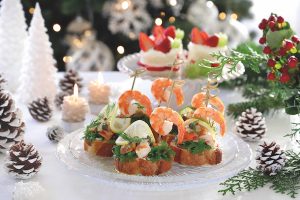 Ekmeği dilimler halinde kesip üzerine krem peyniri sürün. Temizlenmiş karidesleri tavada tereyağı ve sarımsakla kısa bir süre çevirin. Ekmek dilimlerinin üzerine somon füme parçaları, istediğiniz yeşillik yaprakları ve ince kestiğiniz limon dilimlerini yerleştirin. Karidesleri kürdana geçirip ekmeklerin üzerine yerleştirin.